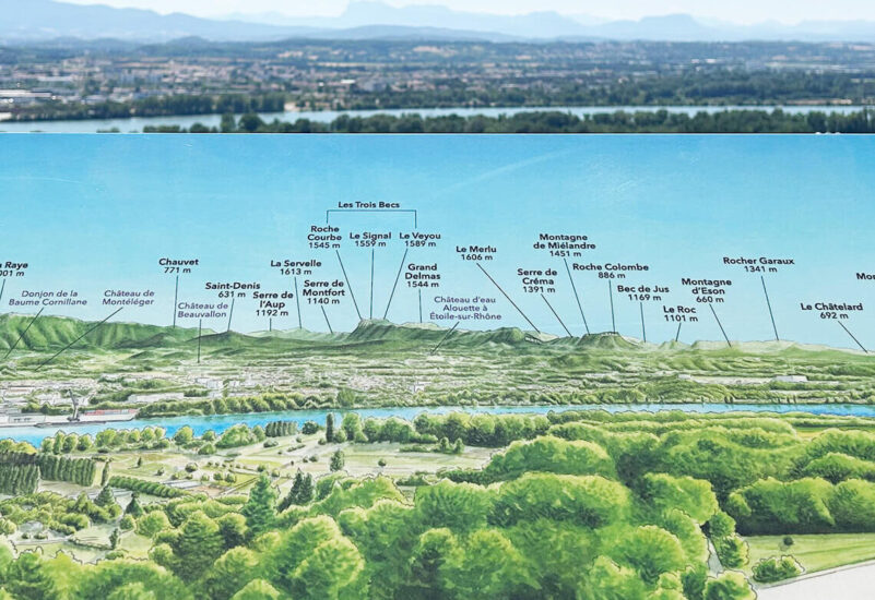 Pour créer votre table d’orientation, nous prenons tout d’abord une série de photographies du paysage depuis le lieu d’installation. Nous réalisons ensuite une illustration au crayon à partir de ces clichés. Une fois le crayonné validé, nous réalisons la mise en couleurs du paysage à l’aquarelle ou de façon numérique. Enfin, nous mettons en page le panneau selon votre charte graphique ou une créée spécialement pour ce projet de signalétique.