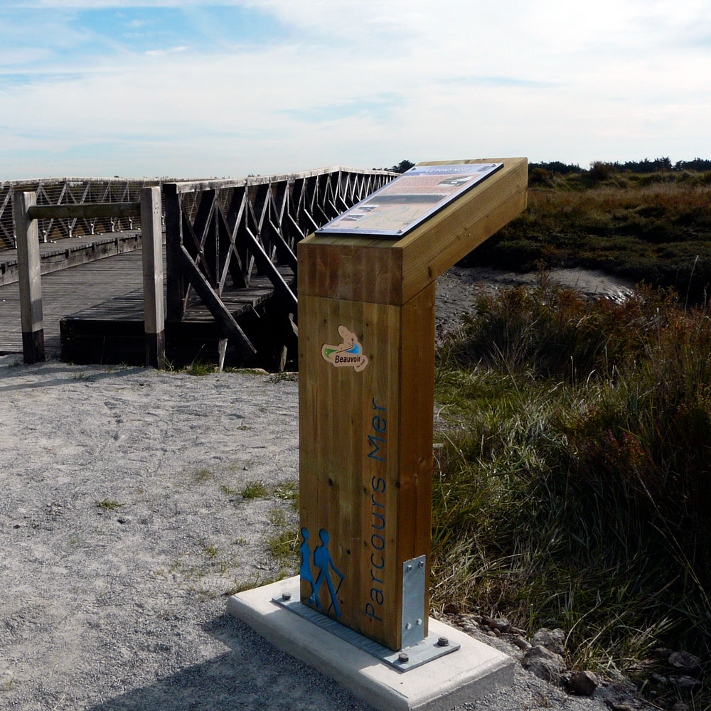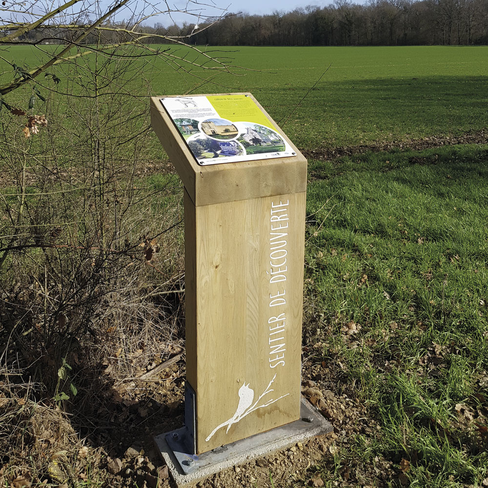 Le PUPITRE PATRIMOINE se compose d’une plaque imprimée fixée sur un support en bois lamellé-collé robuste et design, pouvant intégrer une gravure. Cette table d’interprétation permet au promeneur d’identifier rapidement le parcours pédagogique emprunté et s’intègre tout aussi bien en milieu urbain qu’en milieu naturel.