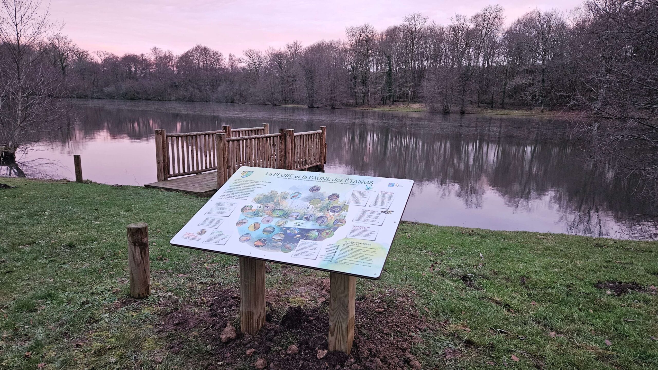 Dans le cadre du projet d’aménagement des Étangs de Saint-Ange à Bussy-en-Othe, notre équipe a accompagné la collectivité dans la valorisation de ce site naturel remarquable. Pensé comme un espace de découverte accessible à tous, le site invite les visiteurs à mieux comprendre les écosystèmes qui les entourent, tout en respectant les usages et la qualité paysagère du lieu.